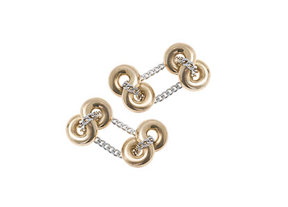 These Innsbruck 9ct Gold Heavy Infinity Chain Cufflinks combine bold style with refined craftsmanship. The free‑running white gold chain loops through solid 9ct yellow gold sides, creating a distinctive infinity design with luxurious weight and movement.