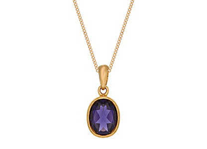 Crafted in 9ct yellow gold, this stylish classic oval rich violet Iolite pendant is both stylish and versatile, taking you from day to night with ease. Looking great with jeans and trainers, as well as with an elegant evening gown or anything in between. We are sure this pendant will become a much favoured addition to your collection that you will want to wear as often as possible, so why not treat yourself.