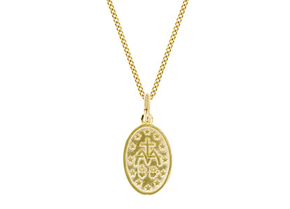 The Miraculous medal or pendant, the Madonna (Virgin Mary) or holy Mary.
