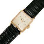 Firstly, this Omega ladies’ watch in 9ct gold features a vintage square case with mechanical movement, offering style and lasting value.