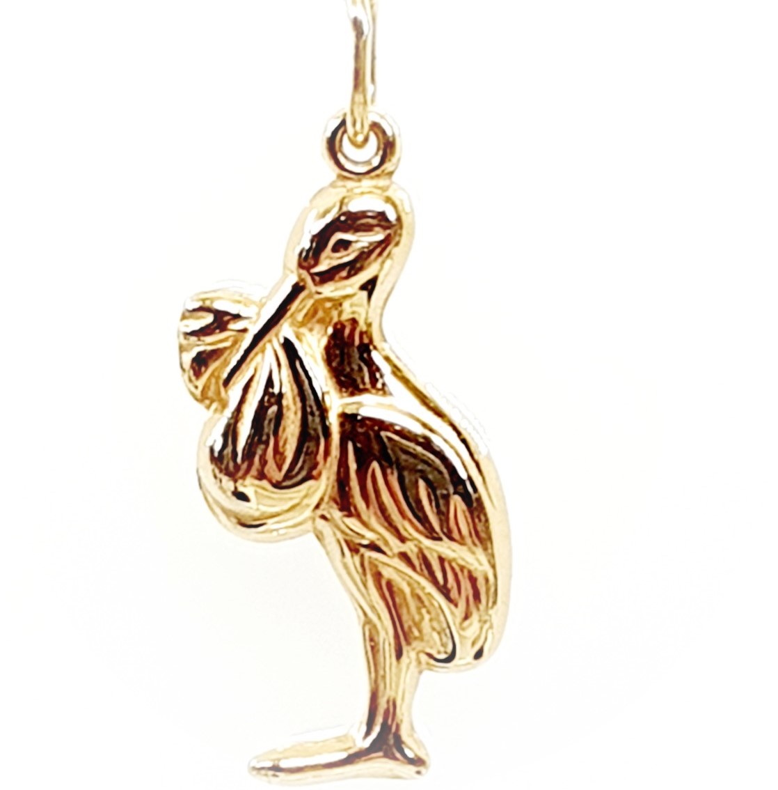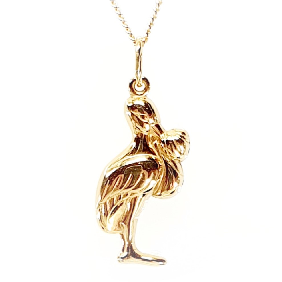 This cute little puffed stork and baby pendant was made in Italy from 9ct yellow gold. Do you know someone who will be rejoicing soon with a visit from the stork with a blessed bundle? No matter how a baby arrives, it is an occasion for celebration.