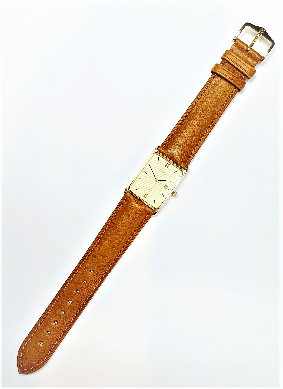 City of London Jewellers Presents this Stunning 9ct Gold Vintage Gentlemen’s Roamer Watch with a tan strap.