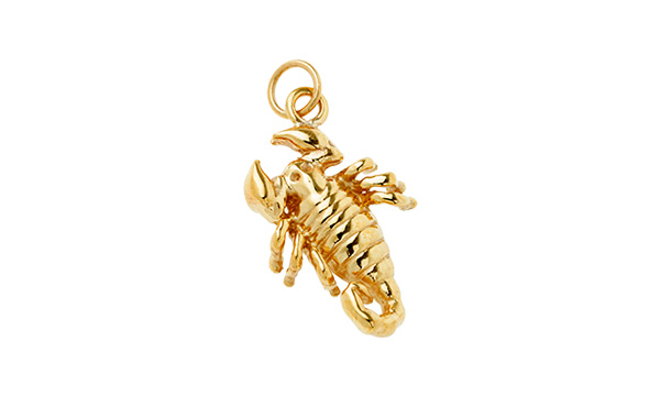 This unusual heavy scorpion charm is crafted in solid 9ct yellow gold.