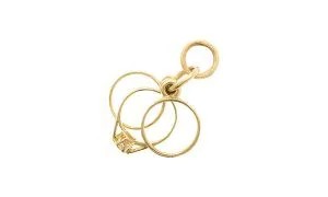 A lovely charm featuring three tiny rings—wedding, engagement, and eternity—crafted in solid 9ct gold with a sparkling cubic zirconia. A classic keepsake for any bracelet or chain.