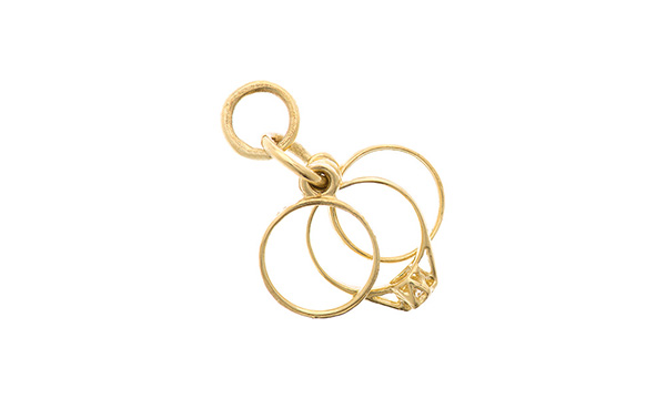 Furthermore, this gold ring charm offers a classic design that suits both modern and traditional jewellery collections. Indeed, each tiny ring moves independently, creating a perfectly complete and meaningful set.