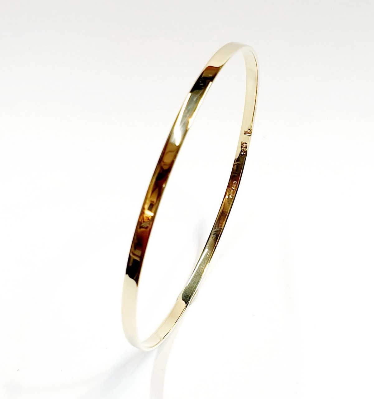 City of London Jewellers present this attractive flat shape polished Colchester 9ct Gold Stacking Bangle B0037 3mm .