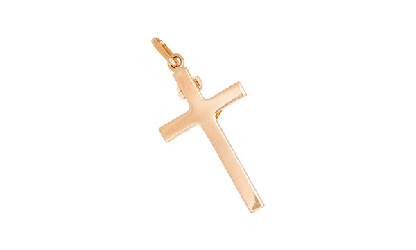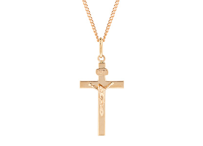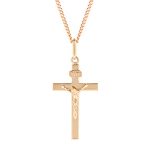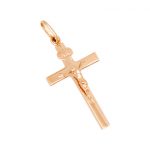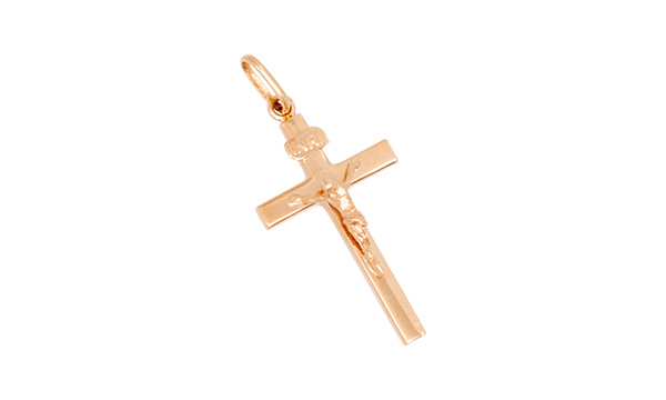 A classic 9ct rose gold crucifix pendant, highly polished.