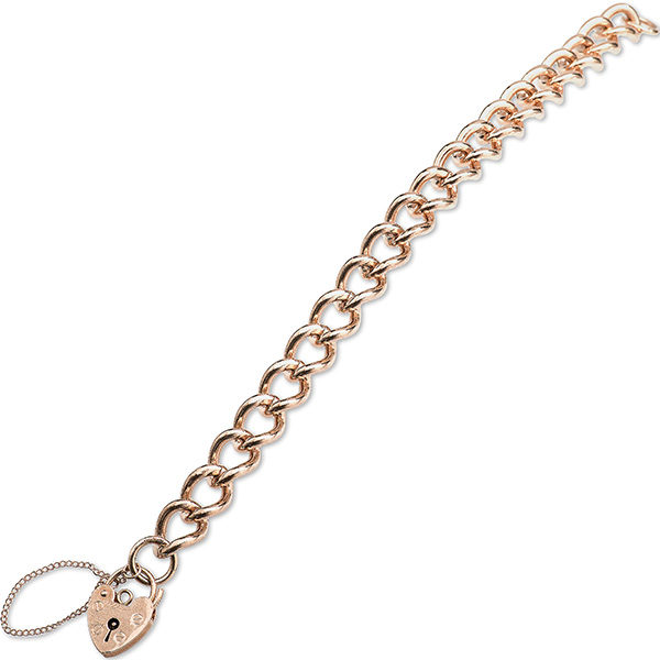 A luxurious solid 9ct rose gold curb link bracelet, fitted with a matching padlock style clasp. A timless design that is made to last, crafted with solid links of heirloom quality.