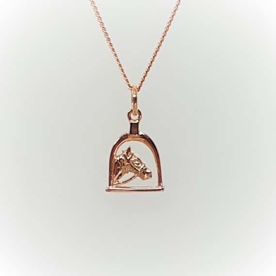 Tags:- Equine, Equestrian, Horse, Horse Head, Stirrup, Rose Gold Equestrian Necklace.