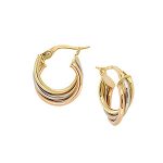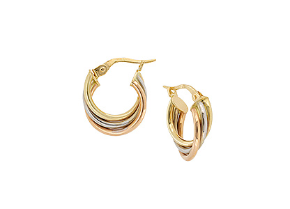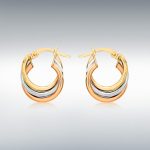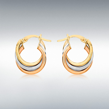 Timeless in design, these so called Russian style loop earring are crafted in 9ct yellow, rose and white gold all linked together and finished with a high polish, a beautifully interwoven fuse of colours. Designed to dress up your look and match anything in your wardrobe.