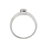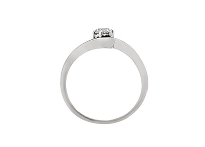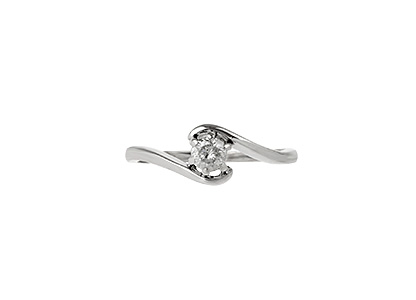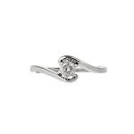 A traditional 9ct white gold round brilliant cut diamond solitaire ring, with a cross-over style shoulders.