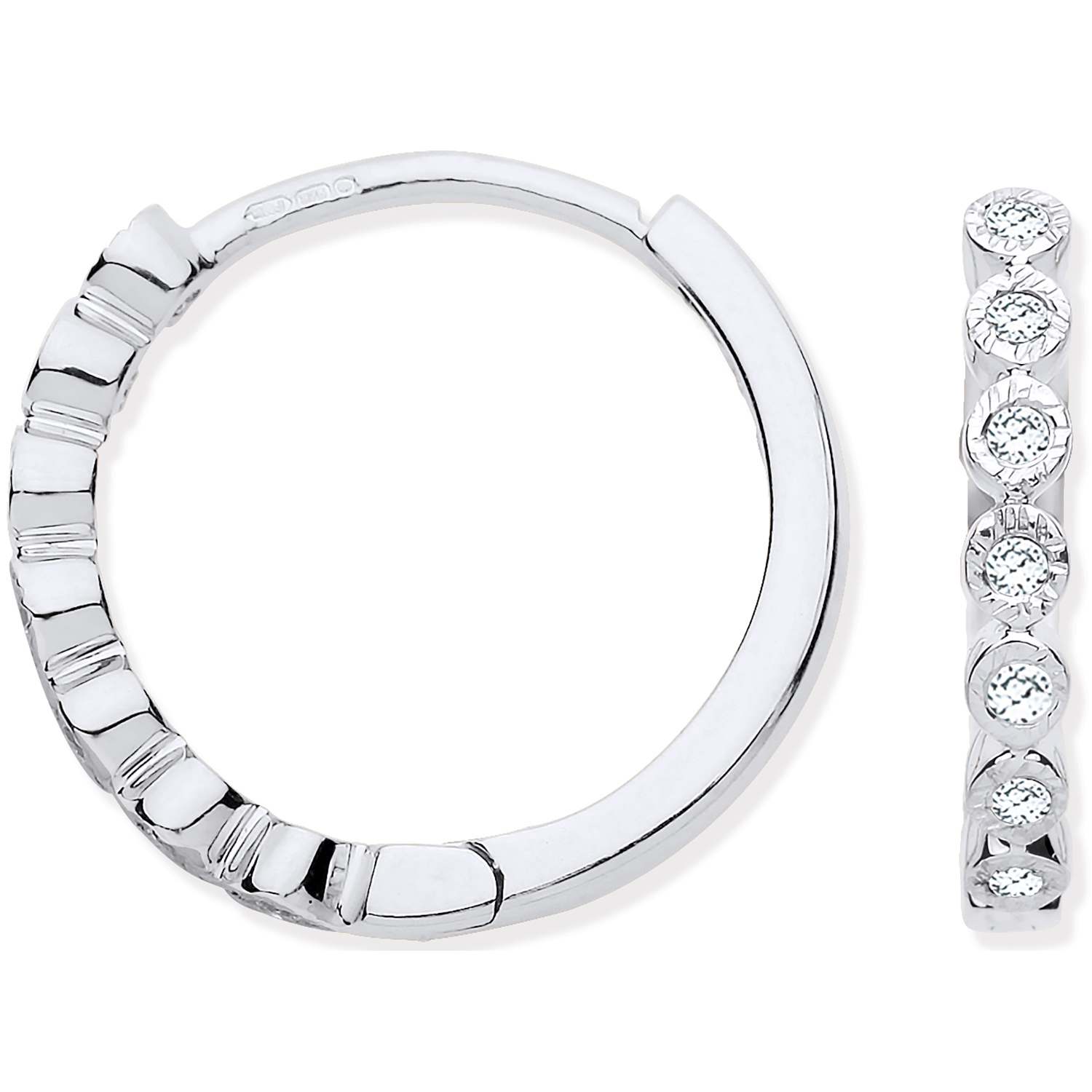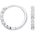 A contemporary design of small loop earrings, crafted in 9ct white gold, with seven elusion set, round white sparkling diamonds to each earring. Ideal for adding a lovely subtle sparkle to your look. I am sure these splendid earrings will become an all-time favourite you want to wear as often as possible, taking you from day to night with ease.