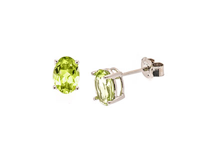 These pretty oval brilliant cut peridot earrings, are mounted in a traditional 9ct white gold four claw setting to show the beauty of the stones to their best advantage. So why not add a delicate touch of apple/olive green colour to your outfit with these gorgeous earrings.