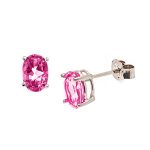 These pretty oval brilliant cut pink topaz earrings, are mounted in a traditional 9ct white gold four claw setting, to show the beauty of the stones to their best advantage. So why not add a touch of shocking pink colour to your outfit with these gorgeous earrings.