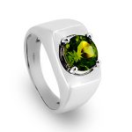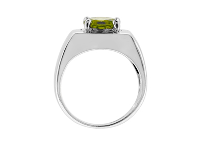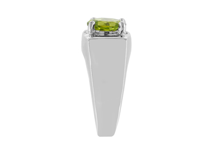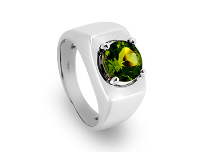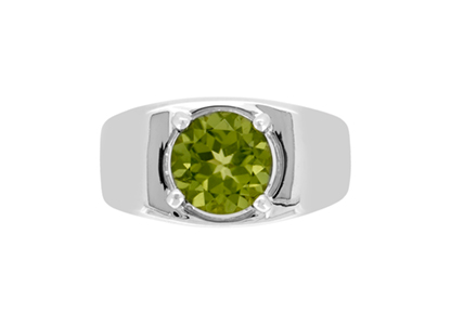 This beautiful ring is set with a single round 8mm lively peridot stone.