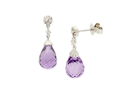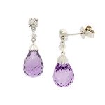 9CT WHITE GOLD AMETHYST & DIAMOND DROP EARRINGS ED00090