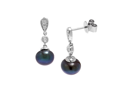 These delightful 9ct white gold diamond and black pearl drop earrings are crafted in three suspended sections to allow a free flowing graceful movement, creating a classic sophisticated look that is great for both day and evening wear.