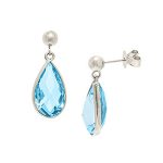 These beautiful sky blue teardrop topaz are multi facetted on both sides and surrounded with a channelled strip of 9ct white gold, suspended from a 4mm white gold ball ear fitting.