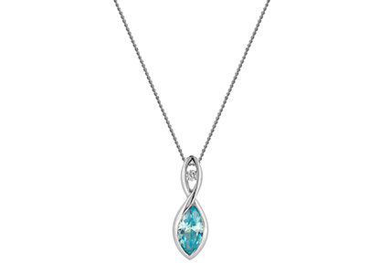 Show your eternal love for another, with this alluring marquise shaped infinity design pendant. Crafted in 9ct white gold with a single sparkling petite white cubic zirconia to the top loop, and a cool blue oval cubic to the bottom loop. The infinity pendant can symbolize unity, eternity, empowerment or an eternal bond of everlasting love.