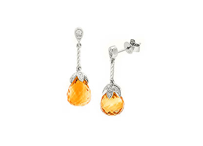 The epitome of outstanding style and sophistication, these beautiful drop earrings are crafted in 9ct white gold and set with a gorgeous sparkling golden yellow teardrop briolette cut citrine, enhanced with eleven round white brilliant cut diamonds in each.