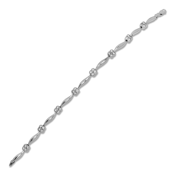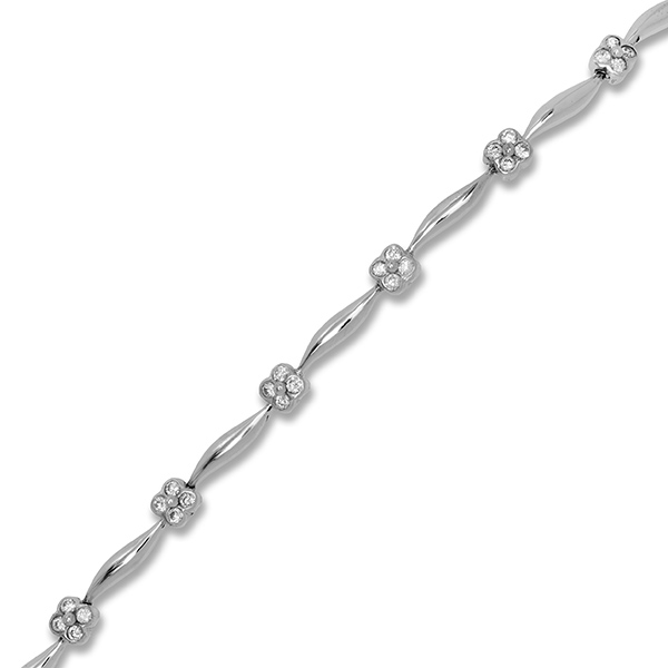 Sparkle in timeless elegance, this modern feminine bracelet is crafted in 9ct white gold, housing four brilliant sparkling white cubic zirconia’s to each section, creating this lovely versatile and very wearable bracelet.