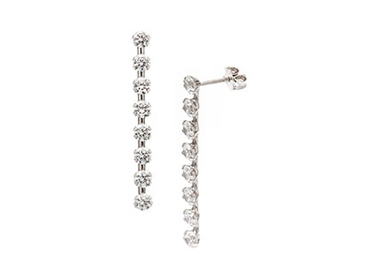 A dazzling bar of eight round cubic zirconia in 9ct white gold settings, dropping directly from the ear, giving a sparkling flash of light adding a stylish finishing touch to your evening outfit.