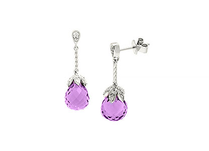 9CT WHITE GOLD DIAMOND & AMETHYST DROP EARRINGS ED00601