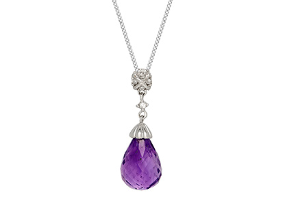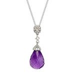 Delightful style and sophistication, this beautiful pendant is crafted in 9ct white gold and set with a gorgeous sparkling purple teardrop briolette cut amethyst, enhanced with round white diamonds above.