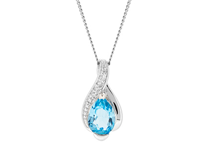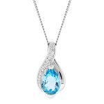 9CT WHITE GOLD DIAMOND & BLUE TOPAZ PENDANT & CHAIN PC00366