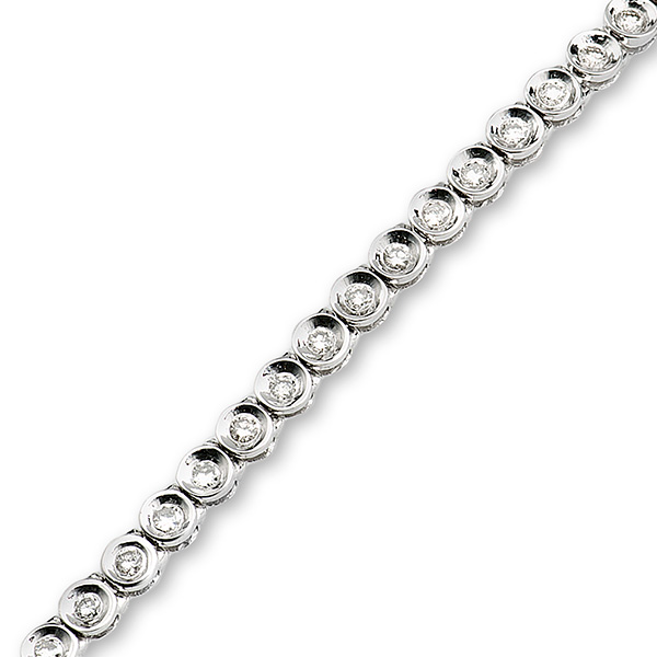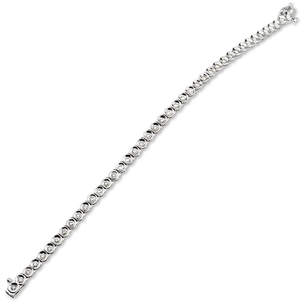 This elegant 9ct white gold eternity tennis bracelet, is crafted to the highest standard with each diamond individually set into a sunken concave mirror setting. Made up of forty-two round brilliant cut diamond sections, with a concealed clasp allowing a continuous uninterrupted smooth flowing movement.