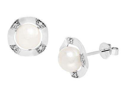 Diamonds and pearls redefined, these gorgeous stud earrings take jewellery design to a whole new level. Expertly handcrafted in 9ct white gold for the modern woman, each stud features a lustrous white gold wave surrounding the pearl, set with four spaced white diamonds to each earring.