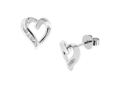 Diamond open heart earrings, these stud earrings are made in 9ct white gold with a highly polished quality finish.