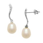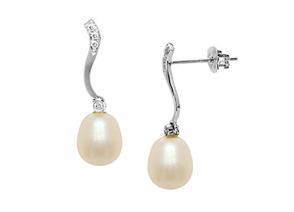 There is nothing like the sophisticated look of pearls and diamonds, these gorgeous feminine earrings will stand the test of time and withstands fleeting fashions, the tapered sleek curved white gold bars are set with three diamonds to the top of each earring , leading to a beautifully suspended diamond and a snowy white oval cultured pearl.