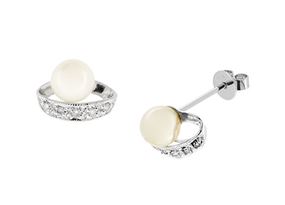 Diamonds and pearls redefined, these gorgeous stud earrings take jewellery design to a whole new level. Expertly handcrafted in 9ct white gold for the modern woman, each stud features a lustrous white single 5mm cultured pearl, accentuated with a loop of five round sparkling white diamonds. A timeless sophisticated design that are extremely wearable for day or evening, and will be a pleasure to wear for any occasion, and would also make a great gift.