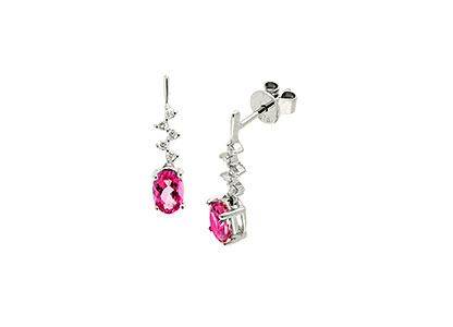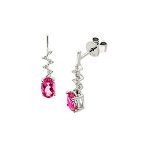 9CT WHITE GOLD DIAMOND & PINK TOPAZ ZIGZAG DROP EARRING ED00631