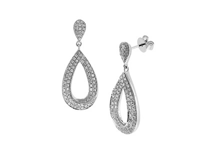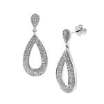 Dramatic and eye catching, these stunning open teardrop earrings are crafted in the pursuit of perfection. With a total of .36cts of brilliant cut round white diamonds set into two parallel rows twisting to the base. Made to the highest standard, using the finest materials and jewellery making skills to create a unique and personal item to be treasured.