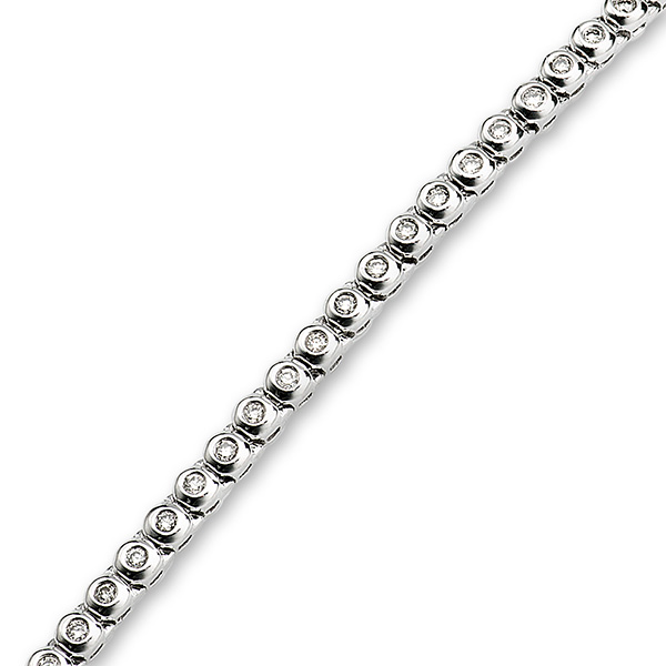 This luxurious, elegant 9ct white gold eternity tennis bracelet is crafted to the highest standard with each diamond in an individual rub over domed style setting. Made up of forty-eight round brilliant cut diamond sections with a concealed clasp, allowing a continuous uninterrupted smooth flowing movement.