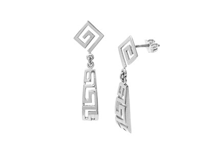 These unusual Greek key patterned earrings have been crafted in 9ct white gold with a highly polished finish. A smart graceful look that will make you feel great, suitable for both day and evening wear.