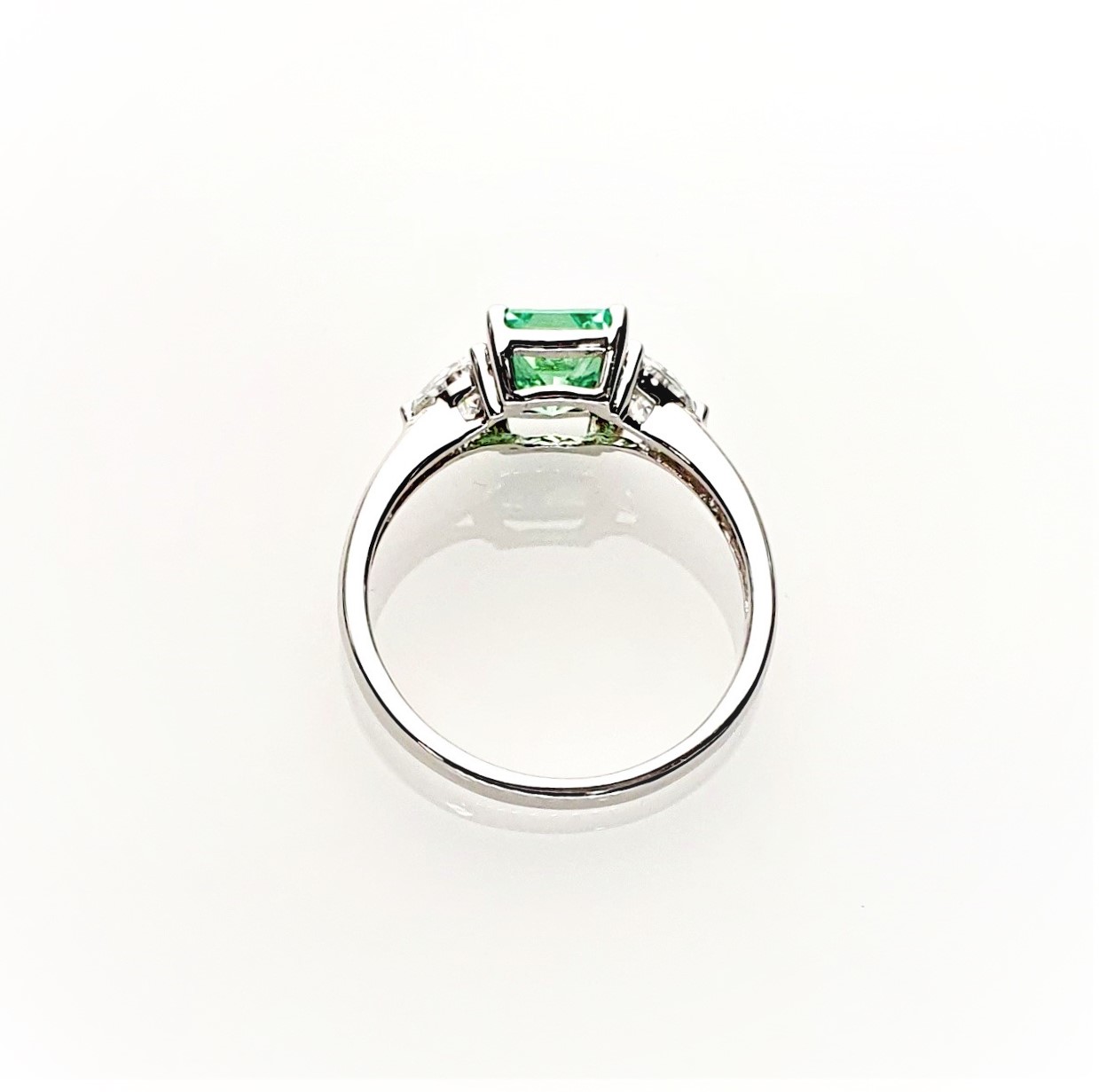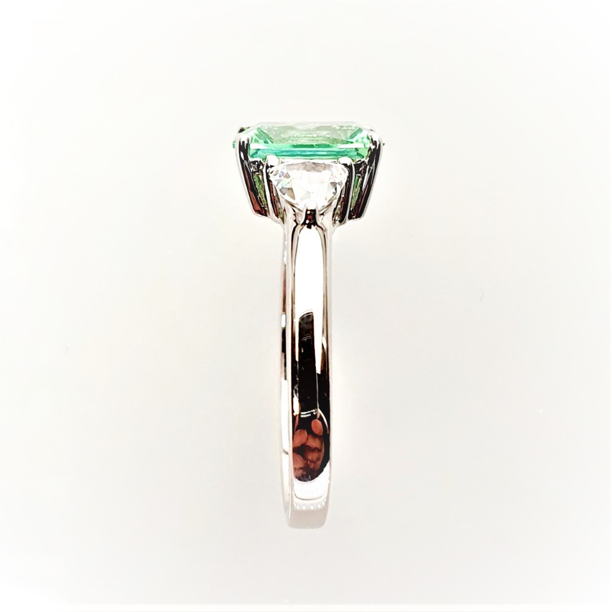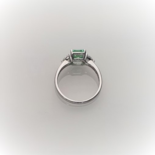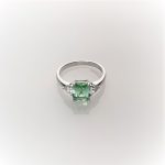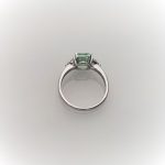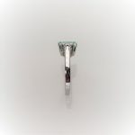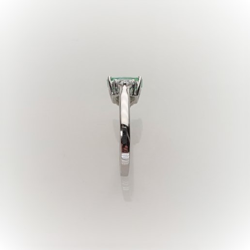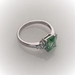 This gorgeous sparkling emerald cut green cubic zirconia measures 8mm x 6mm and also has a contrasting white trillion cut cubic zirconia on each shoulder for extra sparkle. Crafted in 9ct white gold a beautiful eye catching ring that will inspire adoration from young and old alike. So why not surprise the lady you love with this lovely feminine ring and set her heart on fire.