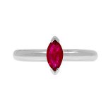 This gorgeous, 9ct white gold contemporary design ruby ring, has an elegance that makes it exceptional, set with a single marquise shape ruby.