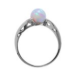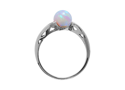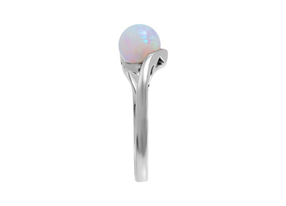 A feminine looking multi colour oplex ball ring, set onto a modern 9ct white gold cross over style band.