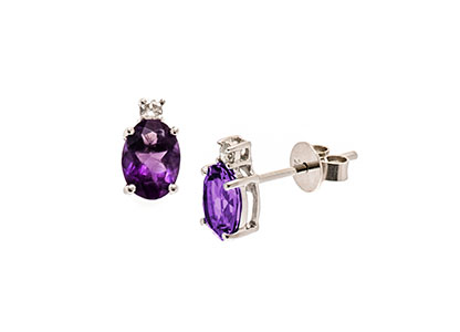 Simply stunning, these luxurious 9ct white gold stud earrings are elegant and intricately crafted to the highest standard. Claw set with a beautiful rich purple amethyst and a single round brilliant cut sparkling diamond set at the top. These gorgeous earrings are truly outstanding and have a sophisticated style that will never go out of fashion.