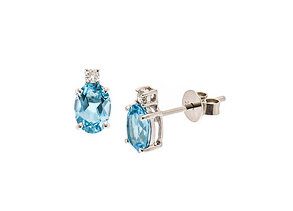 Simply stunning, these luxurious 9ct white gold stud earrings are elegant and intricately crafted to the highest standard. Claw set with a beautiful cool blue oval blue topaz and a single round brilliant cut sparkling diamond set at the top. These gorgeous earrings are truly outstanding and have a sophisticated style that will never go out of fashion.