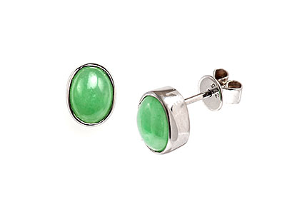 These stunning green jade stud earrings have a smooth tactile feel with a single oval cabochon cut stone, set in a 9ct white gold rub over setting.