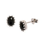 9CT WHITE GOLD 7x5mm OVAL ONYX STUD EARRINGS ES00179