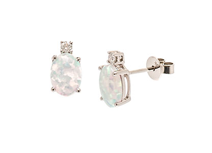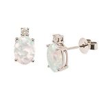 Simply stunning, these luxurious 9ct white gold stud earrings are elegant and intricately crafted to the highest standard. Claw set with an oval oplex and a single round brilliant cut sparkling diamond set at the top, which creates a smart sophisticated statement.