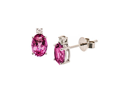 Simply stunning, these luxurious 9ct white gold stud earrings are elegant and intricately crafted to the highest standard. Claw set with a beautiful pink oval topaz and a single round brilliant cut sparkling diamond set at the top. These gorgeous earrings are truly outstanding and have a sophisticated style that will never go out of fashion.