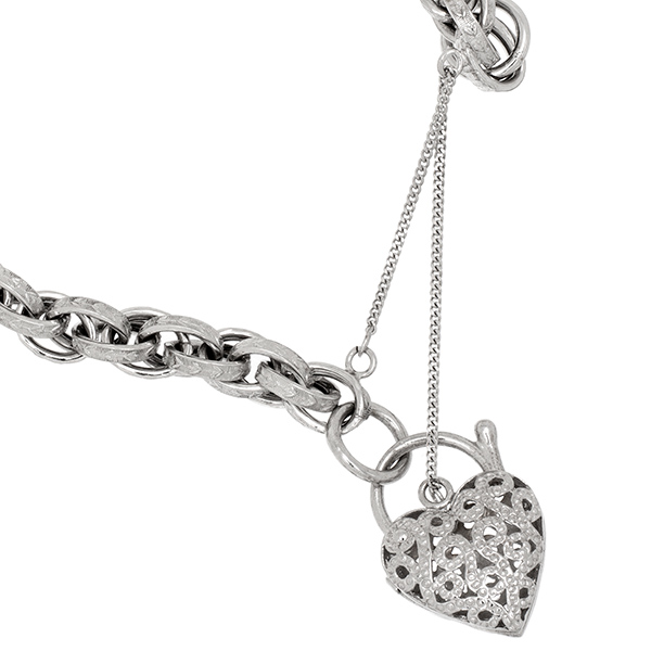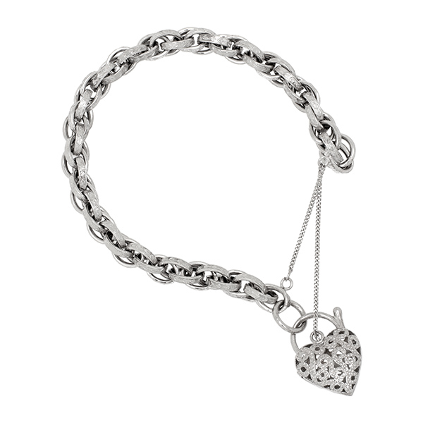 This luxurious and sophisticated, 9ct white gold prince of wales twist bracelet is crafted with a gorgeous leaf patterned gold tubing and has a strong padlock style clasp.