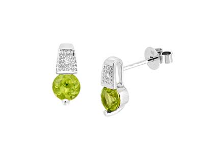 Showcasing a modern yet timeless design, a unique fusion of real olivine green peridot & diamonds, in gorgeous highly polished 9ct white gold settings.
