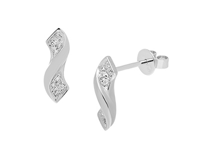 A contemporary petite and elegant, 9ct white gold wave design stud earrings, set with four diamonds to each recessed curved grove. Ideal for every day wear, adding a great finishing touch of elegance to your look.